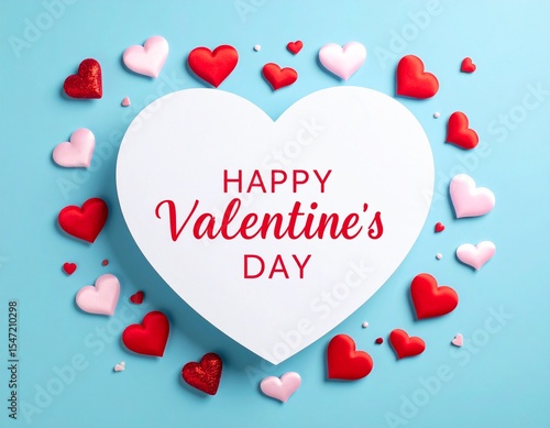 "Happy Valentine's Day" Greeting with Red and Pink Hearts
