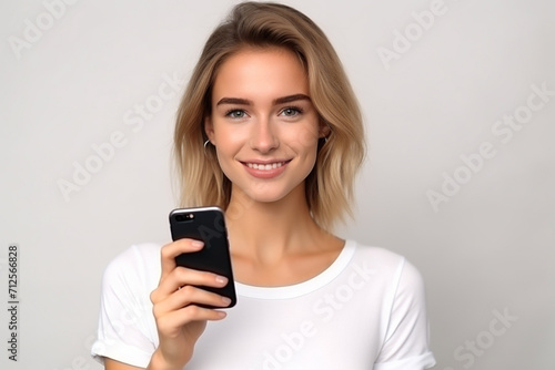 Happy woman with white shirt created with Generative AI