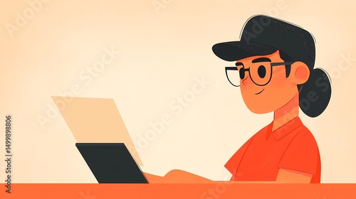 Happy woman working on laptop