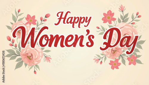 Happy Women's Day Card with Floral Border
