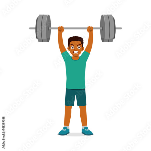 happy young sporty man doing weight lifting