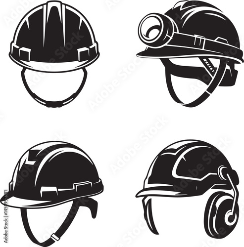 hard safety hats silhouette set vector illustration isolated On Transparent Background