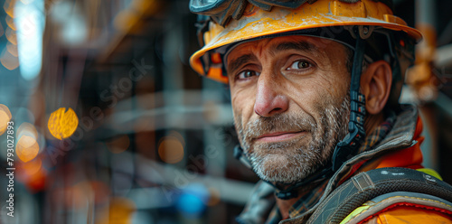Hardhat Hero: Middle-Aged Laborer Beams with Pride on Job Site,generated by IA