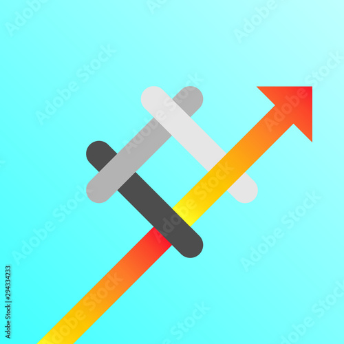 Hashtag symbol of trending topic with arrow up. Concept of number sign, business, social media and web communicate. Filled flat line style illustration.