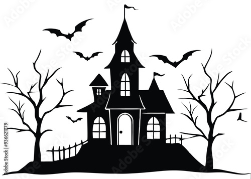 haunted Halloween house vector silhouette
