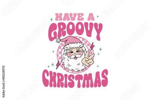 'Have a groovy Christmas' Vintage Style Retro Groovy Santa Claus Peace Sign Sublimation Design