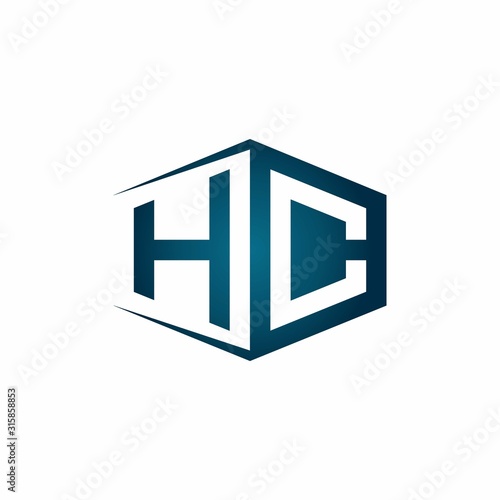 HC monogram logo with hexagon shape and negative space style ribbon design template