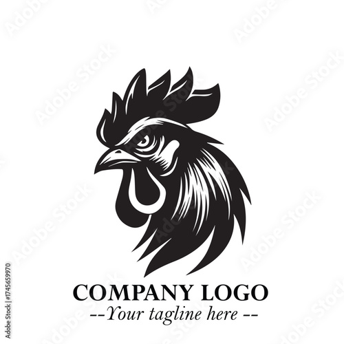 Head of Chicken Logo Symbol Black and White Illustration in Minimalist Modern Vector Design for Branding