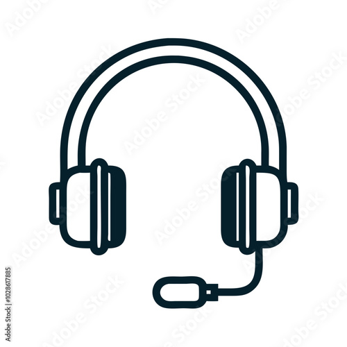 Headset icon with microphone in black outline on white background
