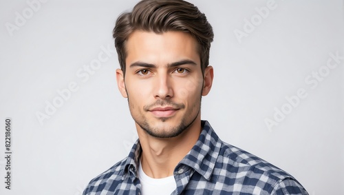 headshot of engineer handsome guy model on plain white background studio from Generative AI