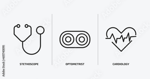health and medical outline icons set. health and medical icons such as stethoscope, optometrist, cardiology vector. can be used web and mobile.