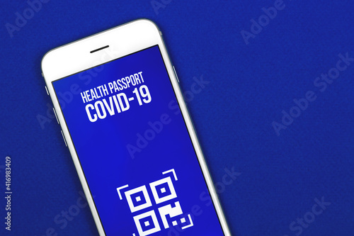 Health passport application with QR-code, COVID-19 immunity test control, smartphone with app