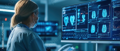 Healthcare professional analyzing medical imaging data in a modern hospital setting