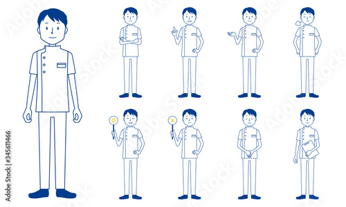 Healthcare worker (physiotherapist) character set in 9 poses isolated vector illustartion