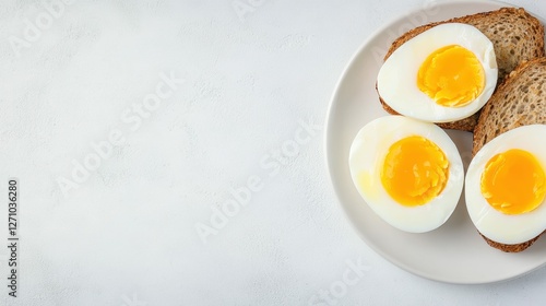 Healthy breakfast option with sliced boiled eggs on whole grain bread