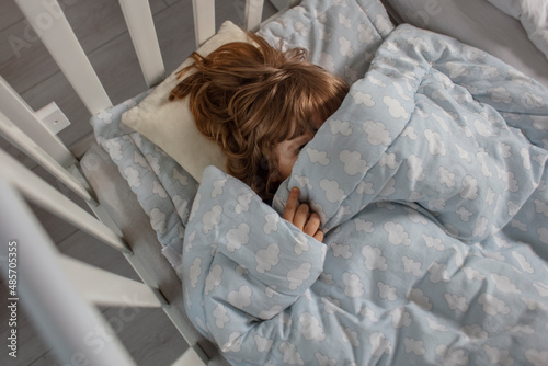 Healthy child, sweetest blonde toddler boy before a sleeping . Beautiful baby boy have a healthy sleep in the bed. Sleeping baby.