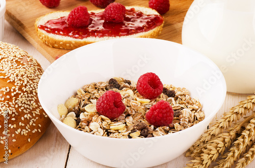 Healthy dietary breakfast with muesli