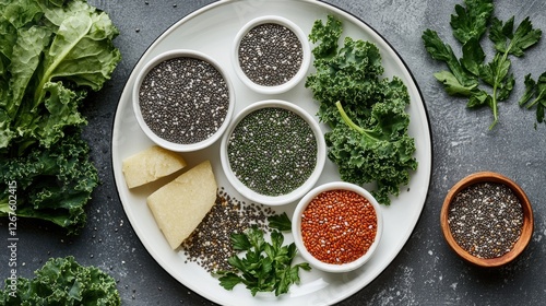 Healthy Eating Chia Seeds Kale Flax Seeds Cheese Plate