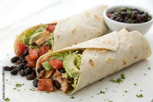 Healthy Vegetarian Mexican Wraps with Lettuce, Tomato, and Beans