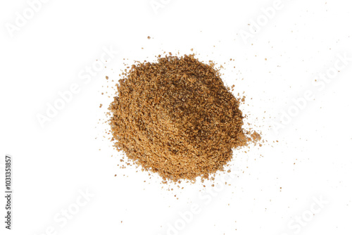 Heap of powdered coriander isolated on a white background. Ground coriander.