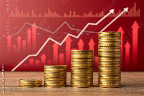 Heaps of gold bullion and coins sit atop a financial trading chart, symbolizing wealth and prosperity in the digital age of artificial intelligence.