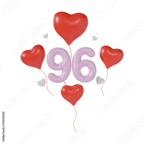 Heart Number 96 Valentine Day Anniversary 3d illustration