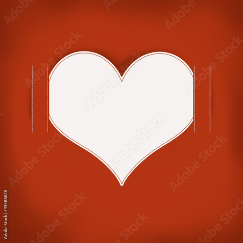 Heart sewing with white thread on the fabric texture background