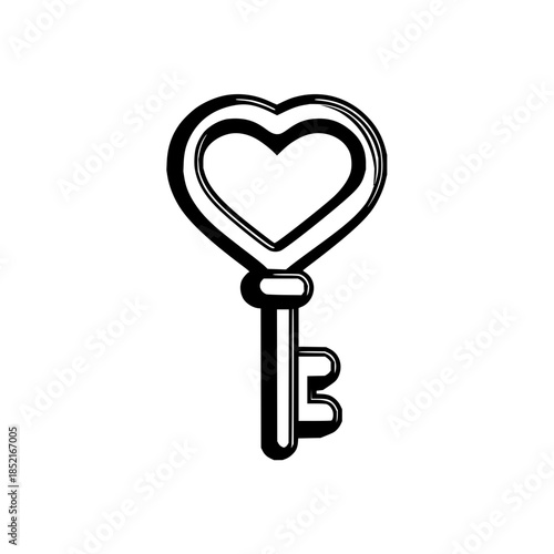 Heart Shaped Key Icon Isolated on White Background