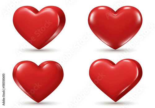 Heart valentines decoration set. Red heart element for valentine's day sign and symbol, isolated on blank white background. 3D illustration.