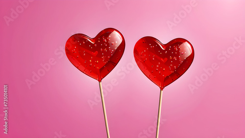 heart-shaped lollipops. heart-shaped candy on a stick. pink background