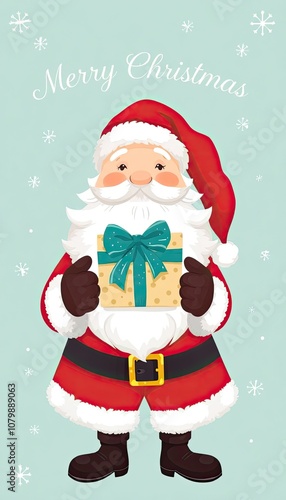 heartwarming and festive illustration of Santa Claus, perfectly capturing the spirit of Christmas. santa claus with. Santa's friendly expression and the carefully presented gift