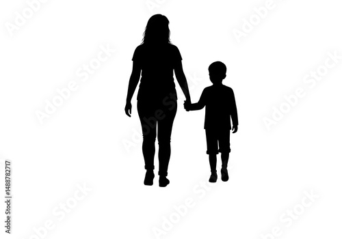 Heartwarming Silhouette of Parent and Child Walking Hand in Hand – Symbol of Love, Care, and Family Bond