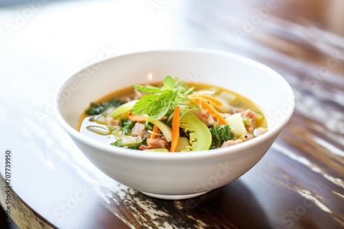hearty minestrone with beans and celery chunks