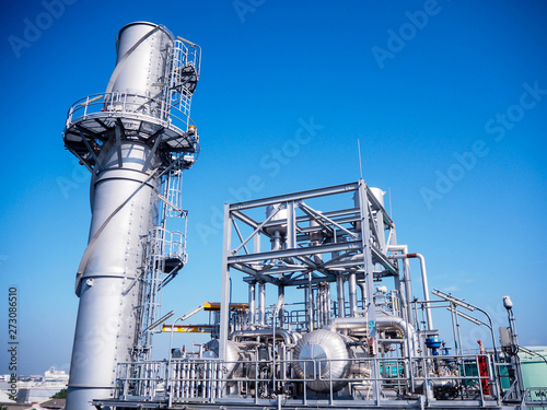 Heat recovery steam generator and sky in Combined-Cycle Co-Generation Power Plant which it so beautiful and popular to background power plant concept.