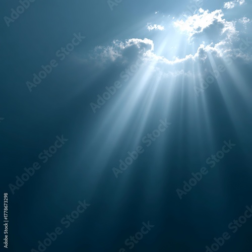 Heavenly rays breaking through clouds glowing divine background