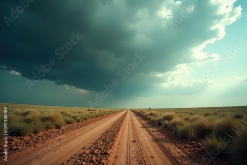Heavy, grey clouds hang low over a dusty, uneven dirt track , background, texture, dry