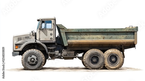 Heavy-duty dump truck isolated on white background. Possible use for industrial design or construction stock photos