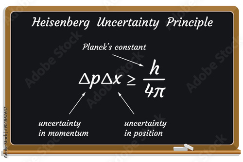 Heisenberg Uncertainty Principle on a black chalkboard. Education. Science. Formula. Vector illustration.