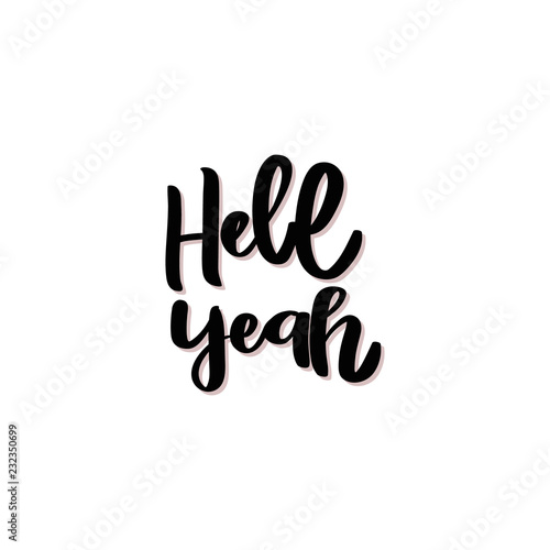 Hell yeah. Handwritten black text.