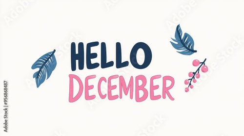 "HELLO DECEMBER" in a minimalist, clean design with a small leaf icon