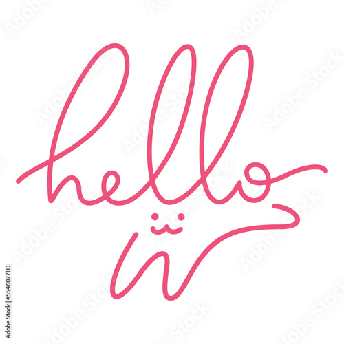 hello greeting text hand written and rabbit continuous line drawing