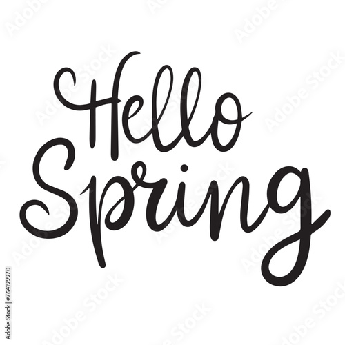 Hello Spring text isolated on transparent background. Hand drawn vector art.