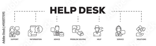 Help desk icon infographic illustration concept with icon of support, information, advice, problem solving, help, service and solutions icon png and easy to edit