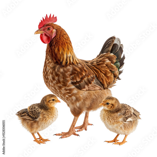 Hen with its chicks isolated on transparent background