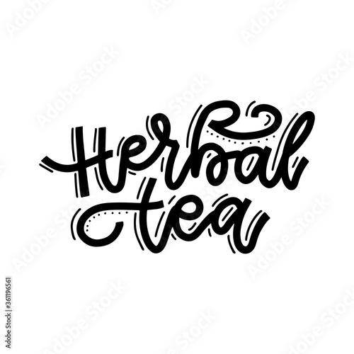 Herbal tea. Linear calligraphy hand drawn vector lettering text