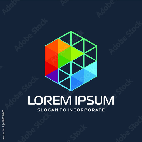 Hexagon letters P digital logo. abstract icon. construction concept - vector