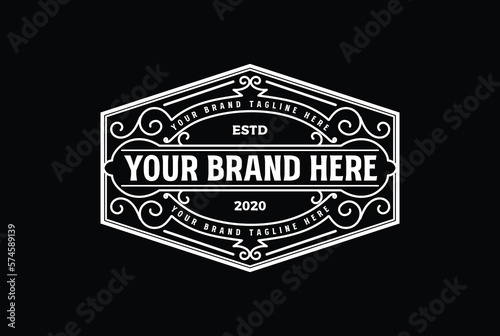 Hexagonal Vintage Border Frame Royal Crown Badge Emblem Stamp Label Logo Design Vector