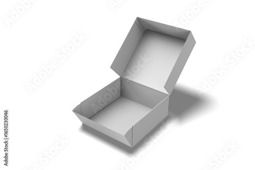 High Angle View of Opened Blank White Food Box, 3d Illustration