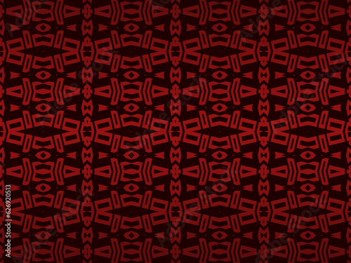 High contrast red and black glossy stripes background. Luxurious batik ornament. Abstract technology graphic banner design. Vector corporate background.