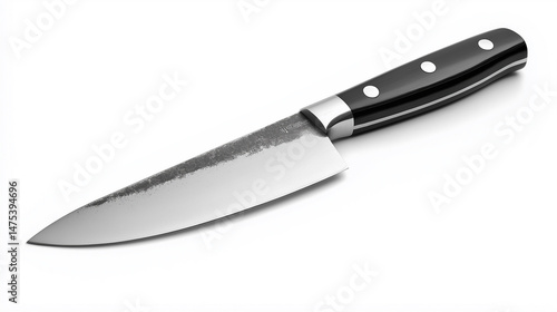High resolution studio shot of a professional chef's knife gleaming with sharpness